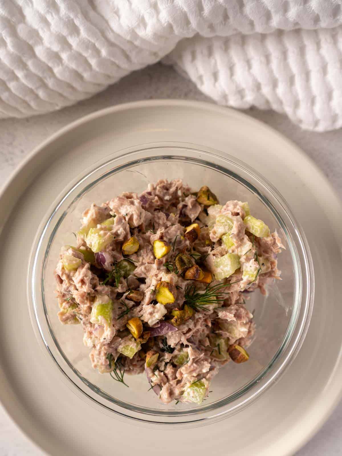 🥣 Main Ingredients: Canned tuna, Greek yogurt, feta, pistachios, celery, red onion, fresh dill, Dijon mustard, lemon juice